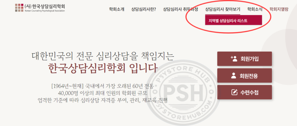 또 다른 방법으로, 심리상담 관련 학회를 통해 각 지역의 심리상담사를 찾는 방법이 있습니다.