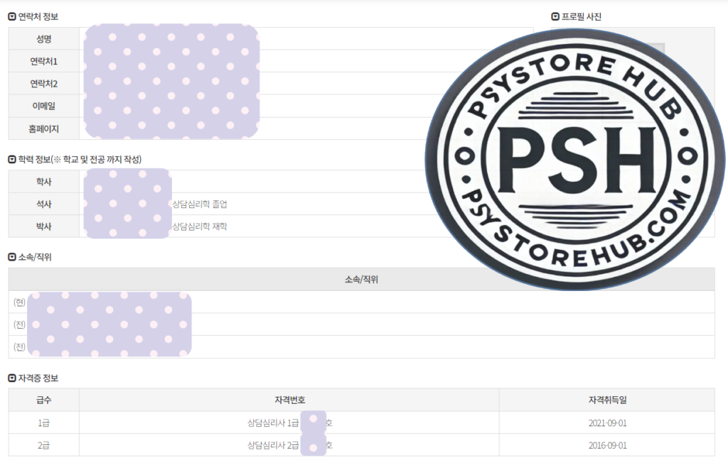 ※ 상담심리사 1급전문가는 “상담 관련 석사학위 취득 이상의 학력과 최소 3년 이상의 수련과정 및 자격심사를 통과하여 개인상담 및 집단상담, 심리평가, 상담사 교육지도와 자문이 가능한” 전문가입니다.